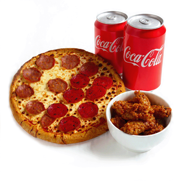 2 Pizzas (6 toppings combined) • 2 lb Wings • Small Fries • 2 Garlic Dipping Sauces • 4 Cans of Pop